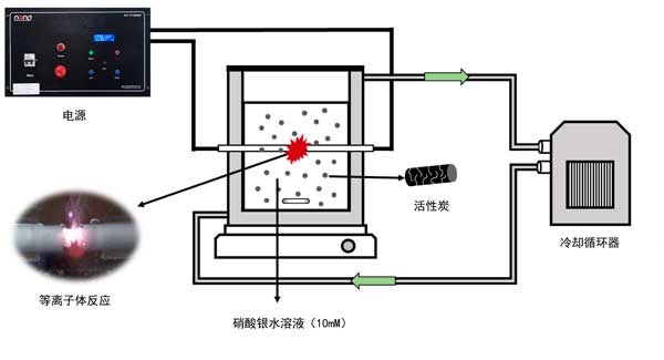 圖1:液相等離子體方法制備載銀活性炭的示意圖。