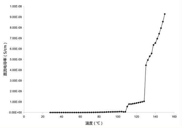 活性炭環(huán)氧梯度復(fù)合材料在距外圍不同距離處的密度。這表明與外圍距離的增加會(huì)降低復(fù)合材料的密度。這是由于活性炭含量的減少。圖1顯示了活性炭粉末填充環(huán)氧樹脂樣品1的直流電導(dǎo)率隨溫度的變化。在該圖中,直流電導(dǎo)率在108℃時(shí)增加,然后在112℃時(shí)變得恒定,直到128℃,然后突然增加直流電導(dǎo)率在128℃后升高,最高可達(dá)150℃。