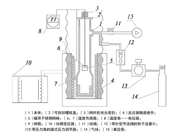 我們使用了基于堿金屬氟化物的低共熔混合物,其組成為mol%:LiF(46.5)–NaF(11.5)–KF(42.0)(FLiNaK)。其質(zhì)量通過導(dǎo)數(shù)儀的熔化溫度(Tm=454℃)檢查。前面詳細(xì)描述了使用FLiNaK的活性炭進(jìn)行吸附的設(shè)置方案。將干燥的活性炭置于帶孔的特殊金屬銅籃中,并浸入熔鹽中。實(shí)驗(yàn)在650℃靜態(tài)條件下進(jìn)行,吸附時(shí)間為1.5h。裝有活性炭的籃子定期進(jìn)行垂直平移運(yùn)動(dòng),使鹽與碳混合。取下籃子后,檢測碳鹽共晶中目標(biāo)元素的含量。Th、U和Nd的濃度通過以下程序分析。含有碳和低共熔物的樣品用硫酸處理以去除HF。然后,在蒸發(fā)后,將它們用水稀釋,并根據(jù)程序使用分光光度計(jì)在650nm的波長下使用鹽酸中的偶氮砷III進(jìn)行分析;钚蕴吭诟患饘兮c之前,為了增加其表面對(duì)金屬的親和力,在200℃的空氣中進(jìn)行干燥,在真空和600℃的惰性氣體中進(jìn)行熱處理。通過圖1所示的裝置制備富含金屬鈉的活性炭樣品。