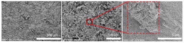 圖2:所獲得的電極在不同分辨率、不同放大倍數(shù)下的SEM圖像。