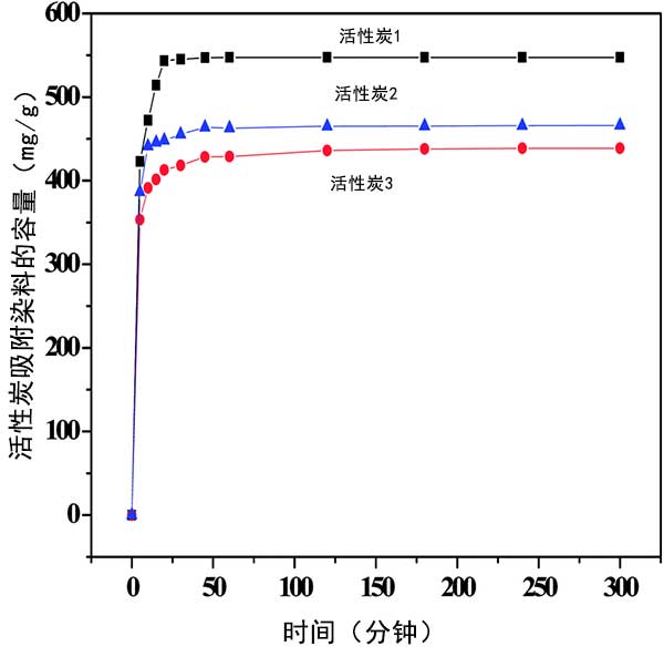 圖1:不同的活性炭上吸附亞甲基藍(lán)。