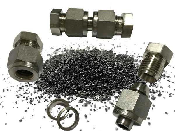 活性炭對脂肪酸的脫羧反應(yīng)在微批量反應(yīng)器中進(jìn)行,該反應(yīng)器由一個管和兩蓋組裝而成。微批反應(yīng)器及其部件的照片如圖1所示。將一定量的反應(yīng)物和活性炭催化劑加入反應(yīng)器中。此后,將密封的反應(yīng)器置于流化砂浴中,將其加熱至所需的反應(yīng)溫度。在所需的反應(yīng)時間過去后,將反應(yīng)器放入水中以淬滅反應(yīng)。沖洗反應(yīng)器中的反應(yīng)混合物并用丙酮在10mL容量瓶中稀釋。然后過濾稀釋的溶液用于分析。