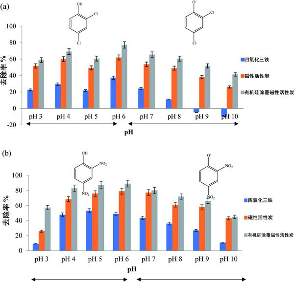溶液pH對硝基酚類物質(zhì)的吸附影響