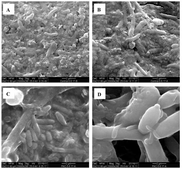 圖3:活性炭添加膜生物反應器實驗結束時結垢膜的SEM成像。