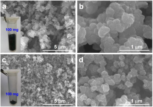 圖2中的插圖是兩種活性炭的數(shù)碼照片。當將相同量的兩種活性炭(100 mg)放入相同體積的離心管(5 mL)中時,活性炭-1粉末占據(jù)的體積更大,這表明他的密度較低。通過掃描電子顯微鏡研究了他們的形態(tài)。如圖2所示可以看出,與原始材料相比,兩種活性炭的外觀變化不大。但是,它們的粒徑不同。顯然,活性炭-1的顆粒大于活性炭-2的顆粒。這些顆粒聚集在一起并形成多孔形態(tài);钚蕴-1具有更大的孔徑,表明較疏松的多孔結(jié)構(gòu)。