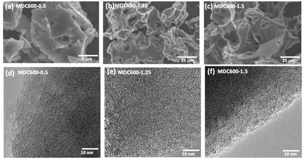 活性炭吸附劑是通過兩步熱解過程制備的,該過程包括將奶粉轉(zhuǎn)化為生物炭,然后在高溫下用堿活化。同時還增加了細微的差別,即涉及一種輔助化學或物理試劑,可在材料上蝕刻出納米級的孔隙。牛奶由多種蛋白質(zhì),脂肪和礦物質(zhì)組成。有特別地酪蛋白蛋白(一種磷酸蛋白家族)以膠束的形式存在于牛奶中,通過疏水相互作用,氫鍵結(jié)合以及膠束核心內(nèi)磷酸鈣納米簇的橋接而在內(nèi)部得到穩(wěn)定。圖1正是這些磷酸鈣-酪蛋白蛋白簇充當碳的3D結(jié)構(gòu)發(fā)展的模板,因為它們在熱解的初始階段得以保存,在此階段奶粉被加熱到400°C,并防止活性炭內(nèi)結(jié)構(gòu)塌陷。在第二個活化步驟中,堿KOH與碳反應(yīng)生成碳酸鉀,碳酸鉀分解并留下富氮和富氧的微孔。所得的活性炭顯示出有效且可逆地捕集二氧化碳,同時排除了水蒸氣。