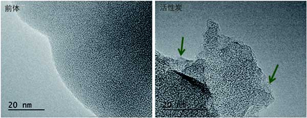 圖1:前體材料(左)和活性炭(右)的TEM圖像。
