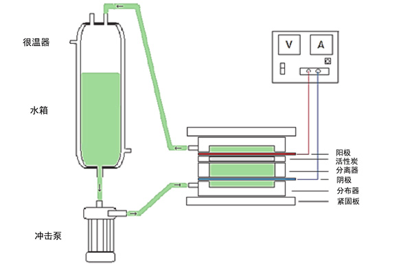 圖1:活性炭電吸附實(shí)驗(yàn)的示意圖。